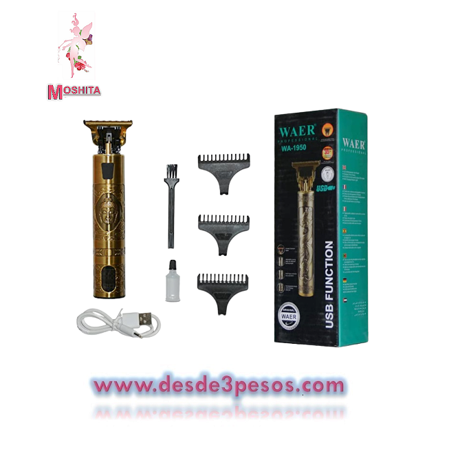Afeitadora electrica Profesional pelo y recortador de barba con 6 accesorios y cargador 15 x 4cm.