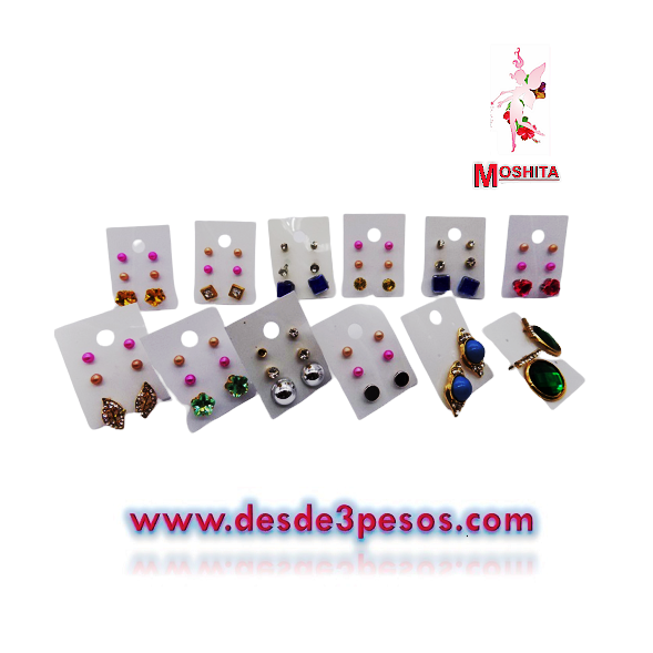 blister con 3 par de aretes en varias figuras
