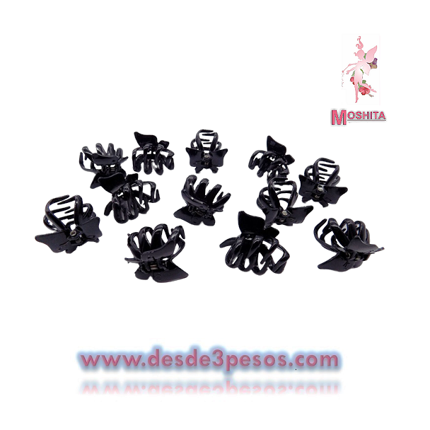 Bolsa con 12 mini pinzas Mariposa negras para peinado 2 x 3cm. Costo Pza. $3.12