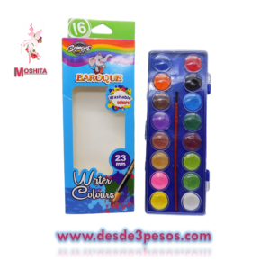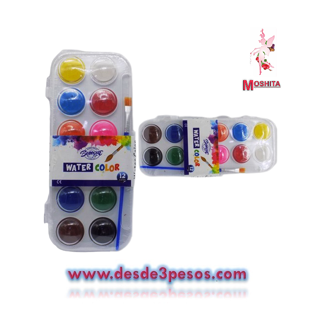 Estuche de plastico duro de Acuarelas 12 tonos con pincel 22 x 9cm.
